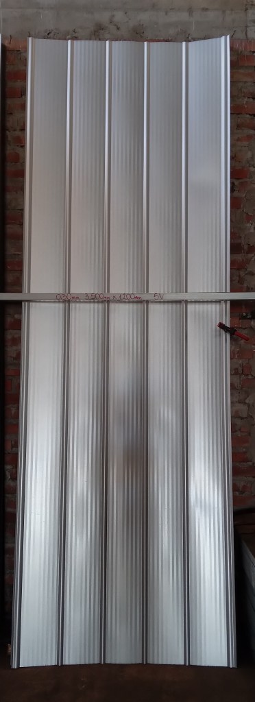 Planchas de zincalum con pequeñas ondas con forma de 5 Vs invertidas. Estas se usan generalmente para revestimiento lateral o cubiertas de techumbre.